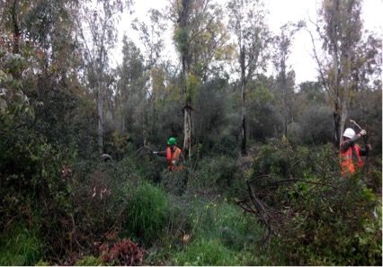 Desbroce y limpieza de zona de barbacoas: consiste en desbrozar la vegetación próxima a las barbacoas y en la poda del acebuche en dichas zonas.