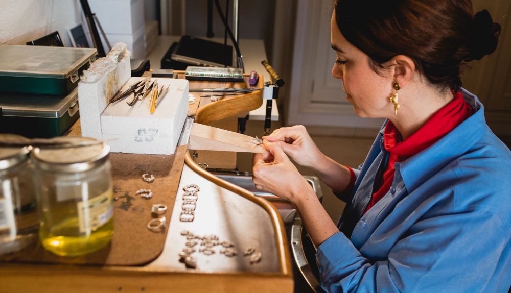 En ese proceso de pensar a qué dedicarse se inclinó por la joyería “que siempre me había llamado la atención”. No tiene ascendencia familiar relacionada con este mundo ni ningún tipo de referente y confiesa que, a su inquietud por la joyería, se le unió “la necesidad de crear”. Dio unos primeros pasos que le agradaron y le hizo tomar la decisión de iniciar este camino, “formándome, que sigo haciéndolo, porque realmente la joyería es supercompleja. Ni siquiera digo que soy joyera porque me da como mucho respeto. Sigo en constante aprendizaje”, afirma.