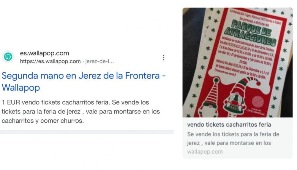 En Wallapop, la plataforma de venta de cosas de segunda mano, se ha podido encontrar un anuncio que vende a un euro los referidos tickets para las atracciones. "Se vende los tickets para la Feria de Jerez" se puede leer en el citado anuncio. El precio del ticket es de un euro.