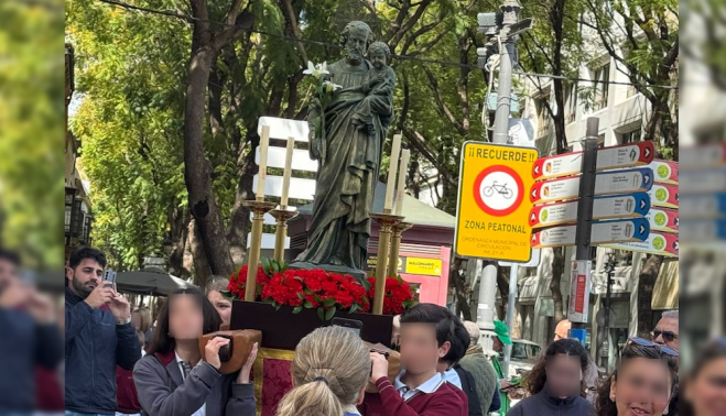 Este miércoles se celebra la festividad de San José, uno de los santos con más arraigo en la tradición cristiana. En Jerez ha llamado la atención una procesión organizada por el colegio La Salle San José con centenares de escolares recorriendo las calles del centro portando una imagen del santo, recordando así la importancia de su figura dentro del santoral católico y la popularidad de su uso como nombre.