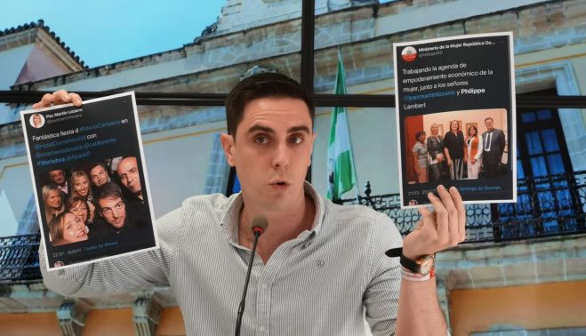 El concejal popular Jaime Espinar ha mostrado en rued de prensa una serie de imágenes que prueban la estrecha relación entre las tres empresas a las que el Ayuntamiento de Jerez pidió oferta para contratar a Akanz Partners por 18.000 euros para el diseño del Centro del Motor.