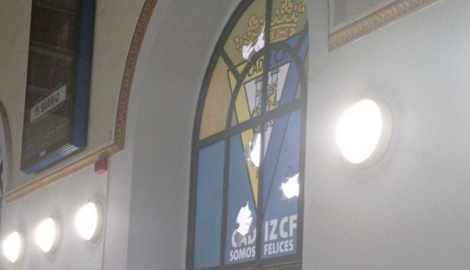 La publicidad puesta en la estación de tren de Jerez apenas ha durado unas horas. El cristal en la que se situaba ya ha recibido algunos ataques con piedras que lo han roto. Muchos ya avisaban de que iba a suceder algo así e, incluso, aficionados del Cádiz calificaron como innecesaria esta idea.