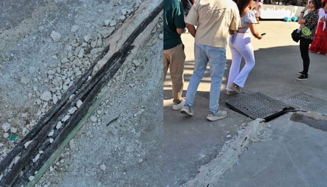 Pero hubo un inconveniente que se encontraron cerca de la zona del Space Roller, una de las atracciones. En el suelo, había una arqueta eléctrica mal cerrada, medio levantada, que no podía colocarse bien. Además, el cableado que va por el firme no estaba bien tapado.