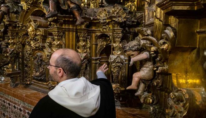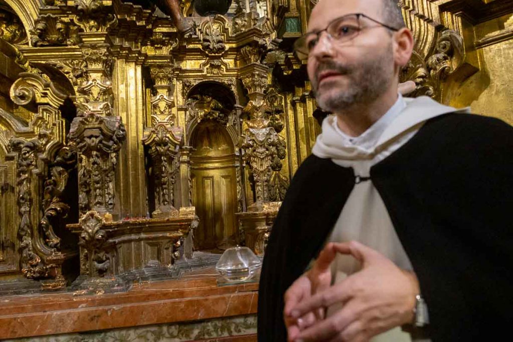 El prior de Santo Domingo, junto al retablo donde se produjo el hurto. FOTO: MANU GARCÍA"Intentaron llevarse un santo Tomás, porque la imagen del retablo estaba movida". Lo cuenta el prior, Juan Carlos González. Lo tiene asumido, horas después del susto de la mañana de este jueves seis de febrero de lo más normal que dejó de serlo. "Un hermano vino a preguntar si yo había cogido a San Pío, ¿yo, para qué?. Sin embargo, santo Tomás tampoco está. Lo han guardado. Las cosas van a cambiar en materia de seguridad. "Hemos quitado todas las piezas pequeñas que se pudieran llevar. Ahora, los retablos van a cerrarse con las rejas enormes", lamenta González bajo los pies del retablo, obra de Diego Roldán, como la pieza sustraída.La Policía tiene varias hipótesis. Una de ellas es que se la hayan llevado para denunciar la situación del patrimonio en manos de la Iglesia. "Hemos tenido varios casos así ya", indican fuentes policiales conocedoras de la investigación. El asunto está en manos de la Brigada de Patrimonio del CNP, que persigue este tipo de delitos. En este caso, al no haberse forzado nada para entrar, se trataría de un hurto. Diferente sería si hubieran actuado allanando el tempo. Otra de las posibilidades que maneja la policía es que se trate de una persona con poco conocimiento de arte, que viendo la oportunidad, pensó que conseguiría una pieza de alto valor.Pero se equivoca. La pieza, siendo del siglo XVIII, y teniendo un gran valor para la Iglesia, pues es parte de un retablo relevante, no es en sí susceptible de venderse por una gran suma. Quizás, 1.000 euros, cuenta el prior. Haciendo una tasación optimista, advierte. No sería fácil indicarlo, pero en España no faltan tallas de este tipo. Tampoco en Jerez.La otra hipótesis, apuntan fuentes policiales, es que se haya apropiado de la pieza una persona que la quiera tener en su casa. "En Jerez, desde luego, en los templos, parece que hay una oleada", indica el prior dominico. En otras ocasiones, han sido joyas, generalmente de hermandades. Es cosa del hombre de todo tiempo. Junto a la pieza sustraída, donde debiera haber tres angelotes, hay dos. "Quién sabe cuándo se llevaron esto, estamos hablando de mucho, mucho tiempo".Desde el convento hacen un llamamiento para que, un día cualquiera, uno en el que no lo esperen, aparezca el responsable del hurto. "No habrá consecuencias", dice el prior. "Se le absolverá de cualquier pecado, que deje junto al confesionario a San Pío V", añade sonriente. Igualmente, espera que la gente ponga de su parte. Quien vea la pieza en venta, o quien viera a alguien con un santo o bulto sospechoso por el centro de Jerez la noche del miércoles 5 de febrero. Un día cualquiera.
