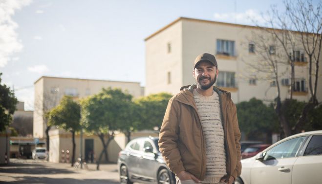 En una tregua de lluvias, con Alba y su hijo, Avi, se ha acercado al barrio que le vio nacer. 25 años hacía que no pisaba La Constancia. “Increíble”, dice el artista que, con 7 años, ya estaba “dando cajonazos” con el instrumento que le regaló su padre, y, con once, empezó a cantar. Primero en un coro rociero, después por las ferias y, más tarde, desde 2007, con el grupo Radio Macandé. En 2015 inició una carrera en solitario en la que ha dado a luz a los discos Sin Protocolo, Limbo (2022) y ahora, Zurdo, su último trabajo, lleno de flamenco pop producido junto a La Tranchete Band.