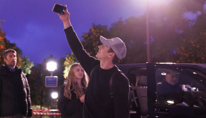 Al terminar su rodaje esta tarde, Hero Fiennes Tiffin se ha parado con algunas de las fans que aguardaban la ocasión para hacerse un selfi junto al británico.