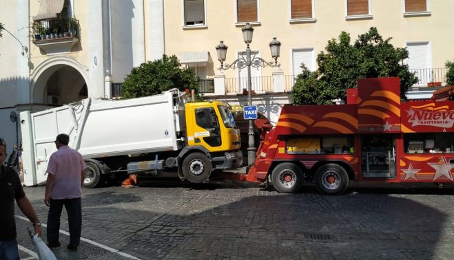 Esta misma mañana, uno de los nuevos camiones de recogida de basuras que han empezado a operar en Jerez ha tenido que ser remolcado por la grúa, ante la mirada atónita de ciudadanos que en ese momento se encontraban en la céntrica plaza Esteve.