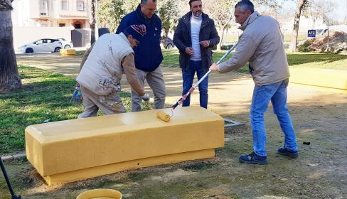 El Ayuntamiento de Jerez ha iniciado trabajos de mejora y adecentamiento del mobiliario urbano de la avenida Rey Juan Carlos I, una actuación que incluye el repintado de sus bancos con distintos tonos de color así como el arreglo y colocación de papeleras.