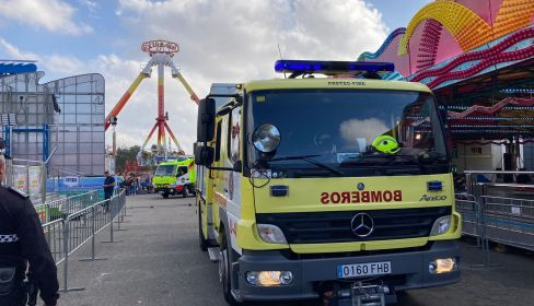Bomberos del parque de Jerez han intervenido este mediodía de sábado en el recinto ferial para el rescate de tres niños que se habían quedado en una atracción de la referida feria. Por un corte de electricidad, el aparato se quedó parado con los tres menores.