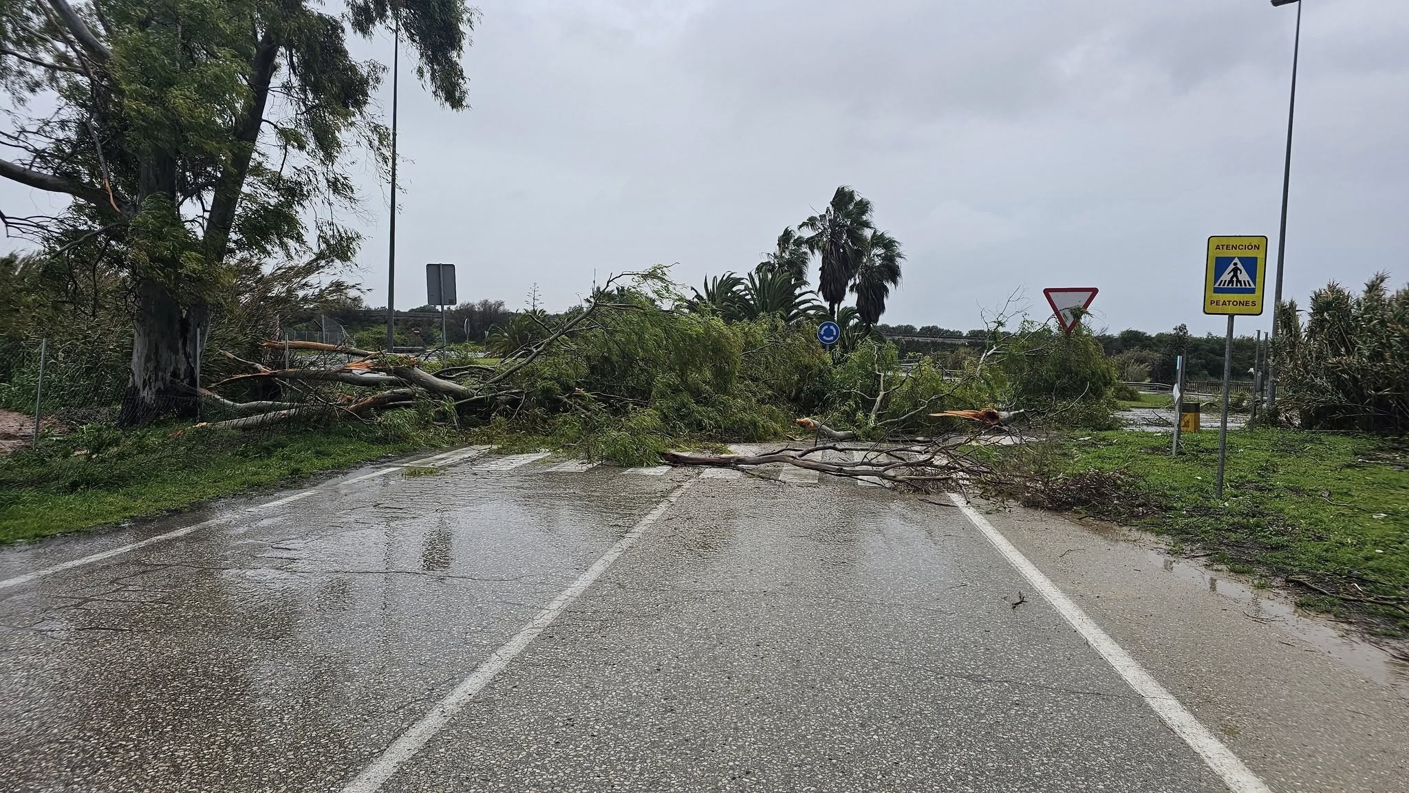 La carretera de Guadalcacín cortada al tráfico a primera hora de la mañana por la caída de un árbol de grandes dimensiones en la rotonda acceso a la ELA por la Ciudad del Transporte ya ha sido abierta, pudiéndose circular con normalidad.
