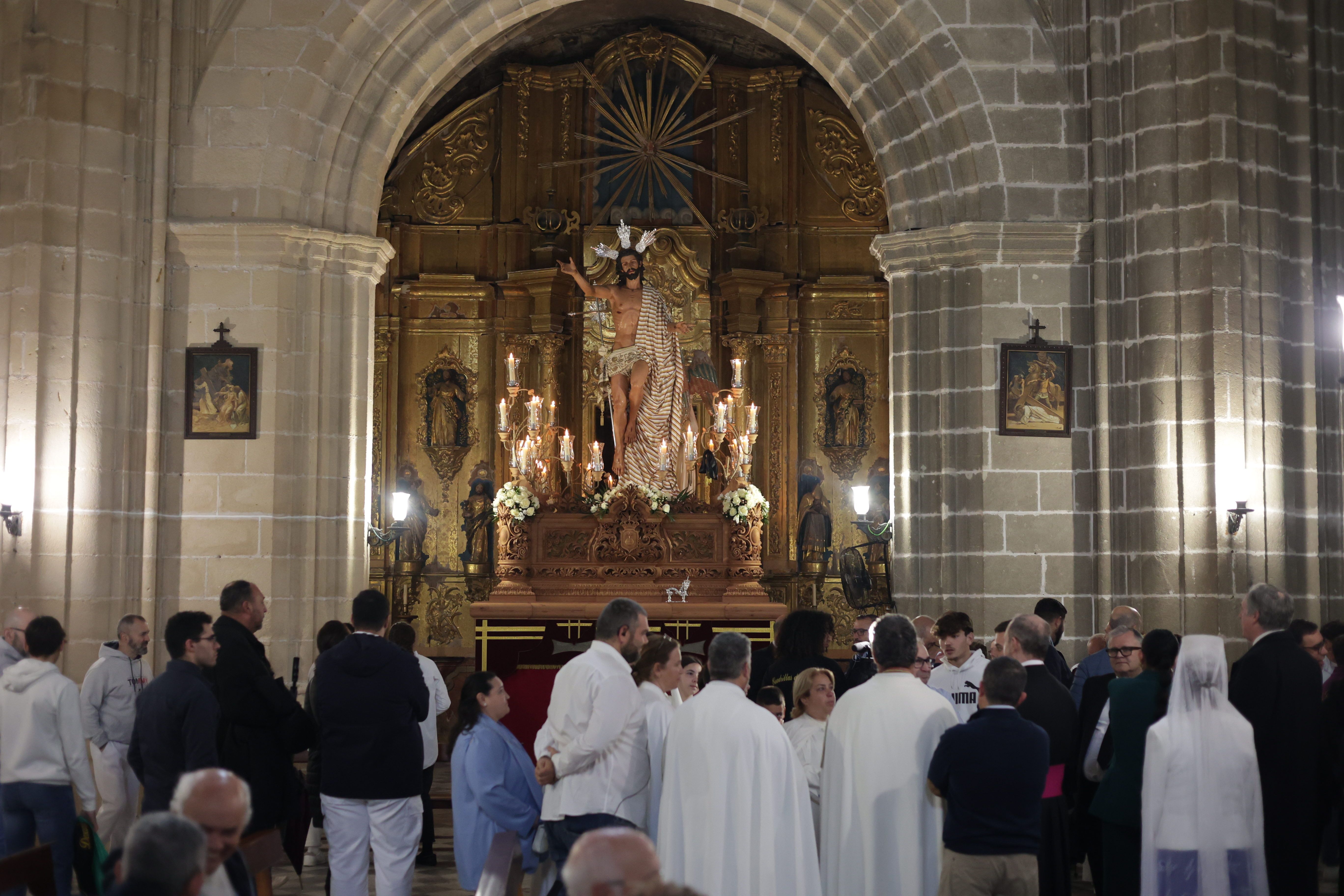 La Hermandad de la Sagrada Resurrección pondrá el epílogo a las procesiones en Jerez con su salida a las 10 horas desde la Catedral. Se ha permitido que tenga lugar en ese horario pese a que se estará celebrando en la Seo la misa estacional de la solemnidad de la Resurrección oficiada por el obispo. Los pronósticos no son buenos. Dan lluvias con un alto riesgo hasta las dos de la tarde.