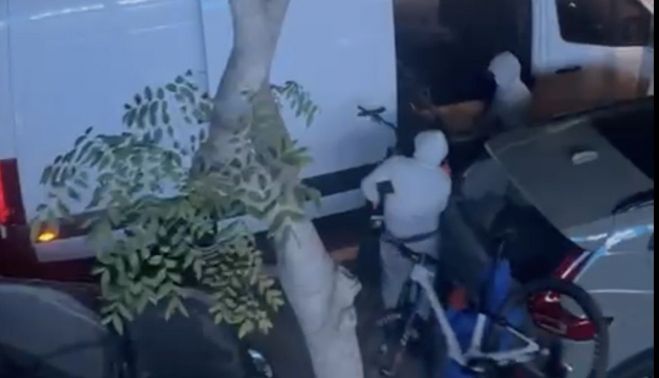 Las cámaras de seguridad de la tienda graban lo sucedido. Un robo de película, en el que incluso hay vecinas que se enfrentan a los ladrones mientras cargan de bicicletas una furgoneta de grandes dimensiones.