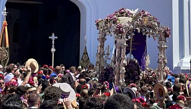 El rezo del ángelus al mediodía era preludio de una llegada a la aldea almonteña que tiene en las calles Bellavista y Muñoz y Pabón el primer punto de encuentro de los jerezanos. Momentos clásicos como los que se producen en la Peña del Divino Pastorcito, el grupo Alba que llega desde Madrid para hacer el camino con Jerez o la casa de Betania donde espera cada año Lupi a la carreta, han tenido como principal novedad algunos pasajes emotivos que recordaban los 50 años de tránsito en carreta de la hermandad hasta llegar a las plantas de la Virgen o el rezo de una salve en la casa de la Peña El Cancelín por un miembro recientemente fallecido.