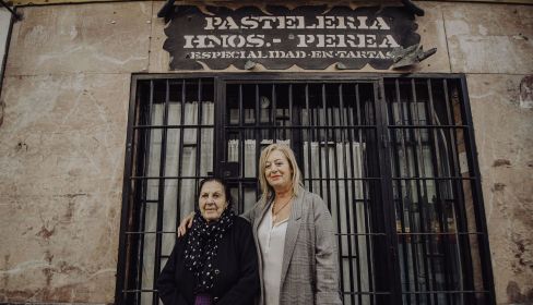 Han pasado muchos años desde 1956. Entonces fue cuando Juan Luis Perea puso en marcha su negocio en la calle Barranco, en San Mateo, a un paso del Arroyo, y a otro de la plaza Belén. Comenzó como fábrica de caramelos y obrador. Caramelos Nuestra Señora del Pilar. Aún hoy, tanto tiempo después, 65 años después, quedan estanterías del establecimiento primigenio. "Pase lo que pase con esto, ni esta ni el arco se van a cambiar", dice María José Perea, heredera del local. Lo dice junto a su madre, Rosario Jiménez, de 88 años.