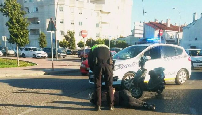 Por otro lado la Policía Local se trasladó a la glorieta de Juan Holgado, donde se había producido un accidente de tráfico con herido. Una vez en el lugar, los actuantes comprobaron la veracidad del comunicado, siendo los vehículos implicados un turismo y un ciclomotor, cuya conductora resultó lesionada como consecuencia del accidente y tuvo que ser trasladada en ambulancia al hospital.