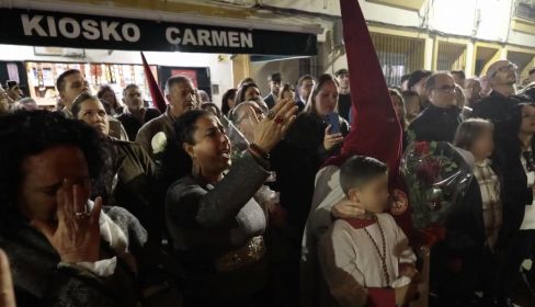 La barriada de La Constancia de Jerez vivió este Lunes Santo uno de esos momentos que se quedan grabados en la memoria colectiva de un barrio. Cuando la hermandad de la Paz de Fátima pasó frente al kiosco de Carmen Gutiérrez Escalera, el silencio se adueñó de la calle y una saeta sonó en memoria de quien durante años regaló desde ese mismo rincón su sonrisa y su dedicación a todos los vecinos.