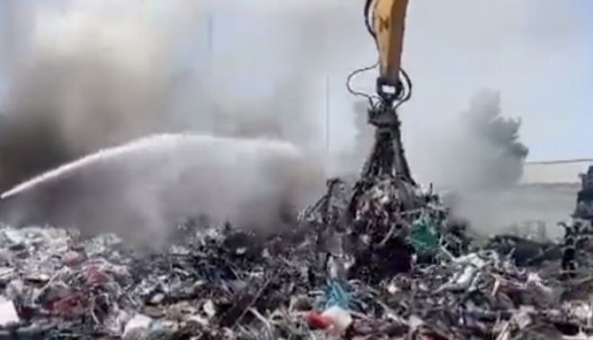 Los bomberos se han tenido que emplear a fondo para lograr extinguir el fuego. Con una grúa se han ido removiendo y retirando algunos de los materiales afectados.
