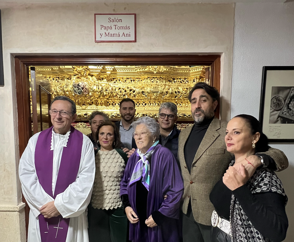 El acto estuvo presidido por el director espiritual, Ignacio Gaztelu, que bendijo el azulejo conmemorativo que da nombre a este espacio de social. La cofradía considera que este fue un acto “de justicia y gratitud hacia una vida de servicio y amor incondicional por la hermandad”. El hermano mayor, David Guerrero Valle, destacó la huella imborrable que "Mamá Ani ha dejado en generaciones de hermanos”, y dirigiéndose a ella -su esposo falleció hace algo os años- le agradeció “cuidar, educar y seguir estando al lado de todos esos niños que hoy son hombres en la fe, los mismos que han luchado y trabajado por esta hermandad como tú y Tomás les inculcasteis”.