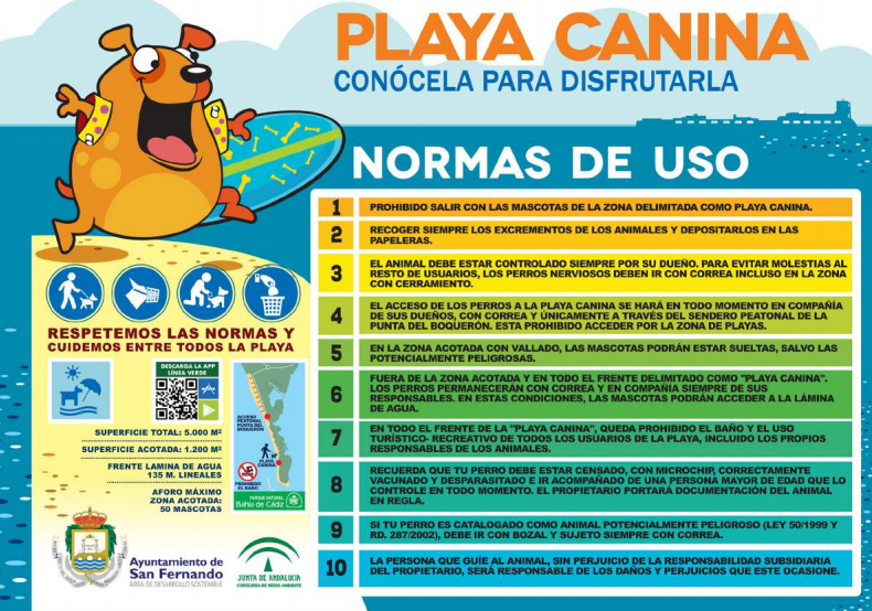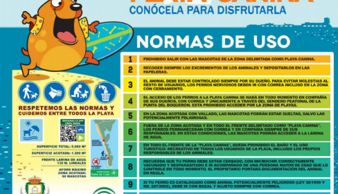 En esta zona, y también al inicio del sendero de la Punta del Boquerón, se ha instalado paneles informativos que contienen las normas de uso de esta zona para que los usuarios puedan estar tranquilos si cumplen todos los requisitos habituales exigidos a los perros: estar censados, llevar microchip, estar correctamente vacunado y desparasitado e ir acompañado de una persona mayor de edad que lo controle en todo momento.