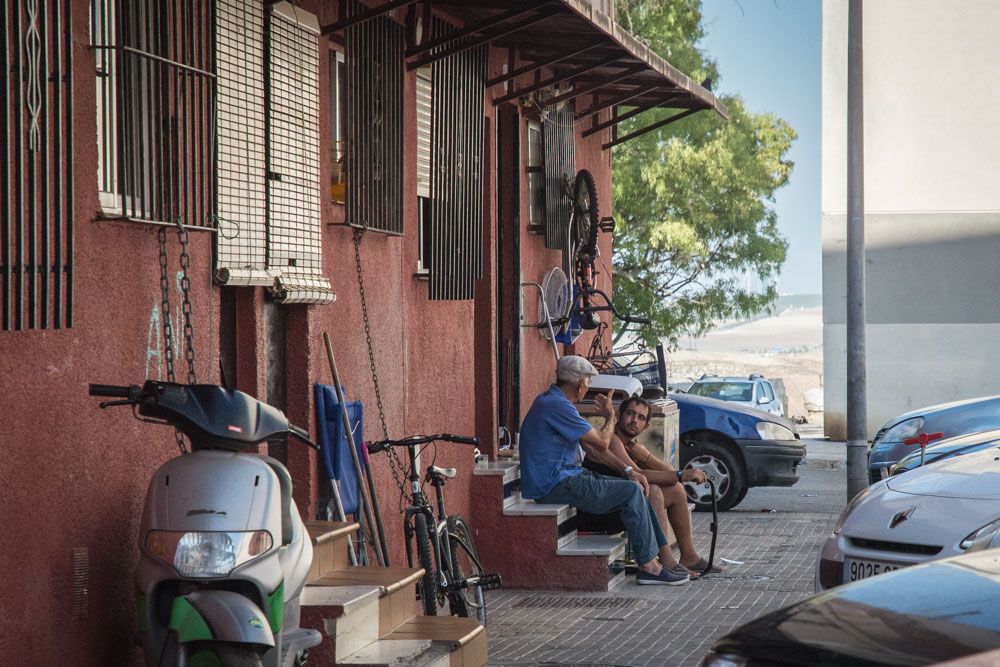 Cuidado al caminar. “La carretera son tiros para los coches”, comentan al señalar los socavones y baches que estampan el asfalto. “Desde hace dos años vienen de vez en cuando del Ayuntamiento, hacen fotos y se van”. Las ratas integran el paisaje de la barriada, “Parten hasta los cables de los coches”, asegura Maribel, otra vecina. Proliferan ante la falta de insalubridad evidente de un solo vistazo: perros en las puertas de las viviendas, montones de basura, de alimentos, pañales… Las causas de la falta de higiene, siempre según los vecinos, es la ausencia de las cuadrillas de limpieza municipales que apenas se dejan ver por allí, la dejadez de unos terrenos próximos y la falta de vigilancia.