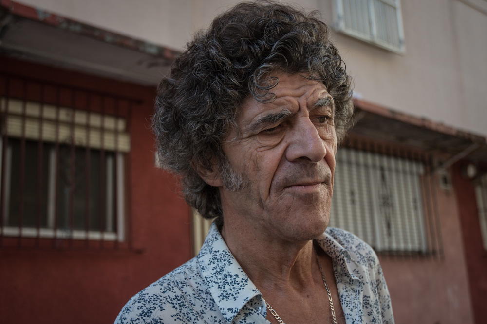 Los hijos de José de los Camarones viven en el bloque 2, y por allí pasea un lunes a media mañana. Habla sin paños calientes, como es habitual en él. Según el cantaor, San Juan de Dios “involuciona”, está muy descuidado. Y saca toda su artillería contra las administraciones y en defensa de su vecindario. “Nos tienen en exclusión. La gente es maravillosa, servicial. No hay trabajo y cada uno se busca la vida como puede. Dicen que somos incivilizadas, pero somos personas cultas con mucha sensibilidad”. La zona es conocida por ser problemática; hablar de San Juan de Dios es hablar de droga y delincuencia. De los Camarones es taxativo, son solo habladurías: “Eso es mentira. La droga es el poder. En las mejores casas siempre hay un cuadro doblado. Delincuencia hay como en todos sitios, en La Moncloa hay, en el Ayuntamiento”. No obstante, el cantaor no niega la evidencia: “Los niños al ver lo que ven, con 14 y 15 años son bombas atómicas”.