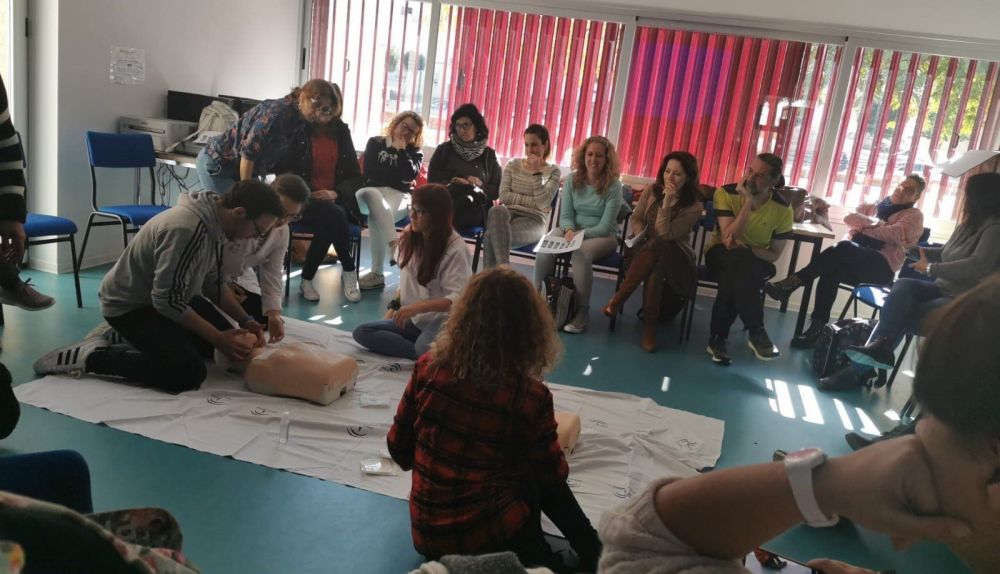 Tres profesionales del centro de salud de Las Delicias de Jerez han impartido dos talleres sobre primeros auxilios y reanimación cardiopulmonar (RCP) a 35 docentes del CEIP Manuel de Falla de la ciudad. El objetivo de esta iniciativa es que los participantes aprendan la activación de la cadena de supervivencia y la realización de la maniobra de RCP, así como otras técnicas y maniobras básicas de primeros auxilios, según ha informado la Junta en una nota.