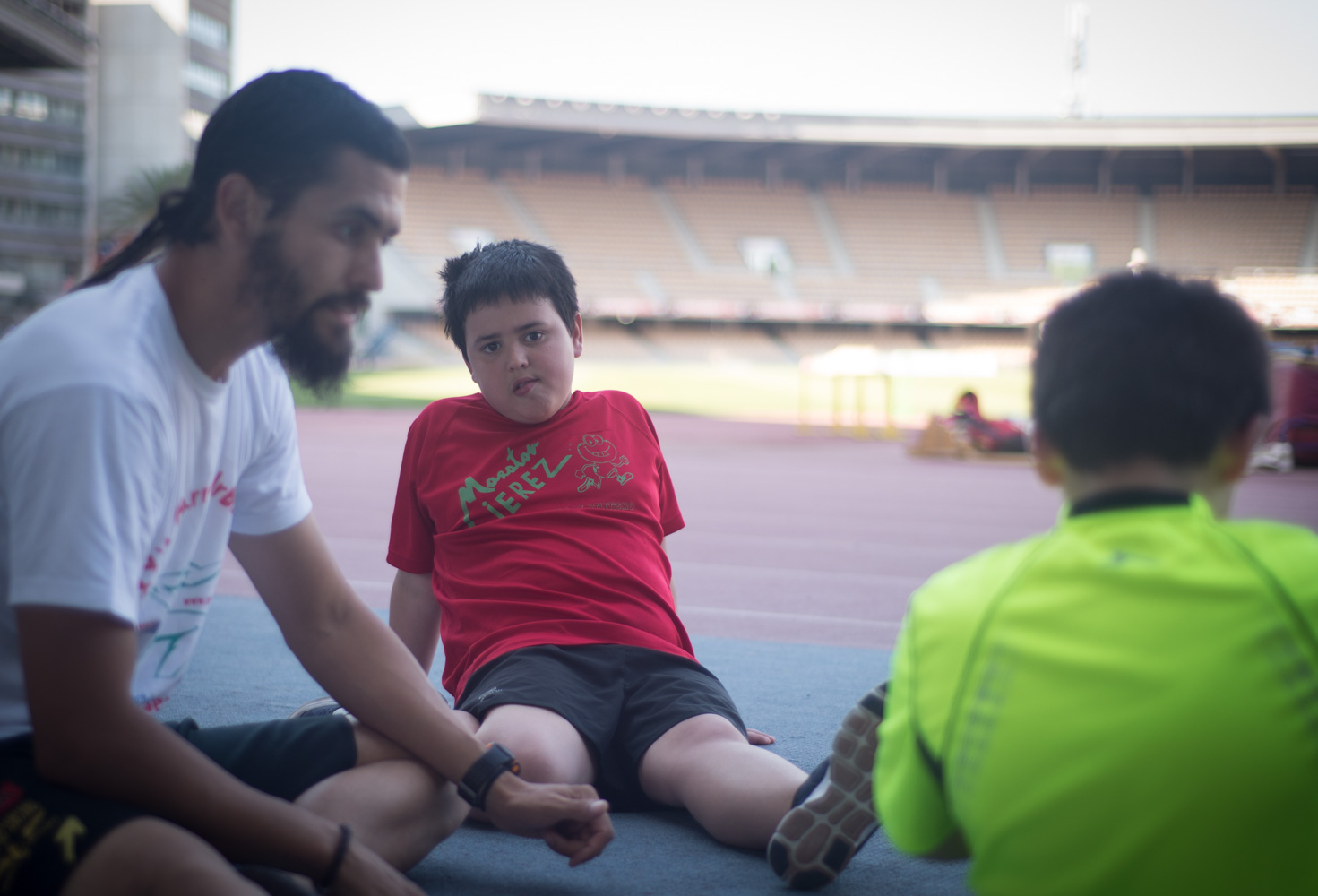Desde octubre de 2015, una psicóloga deportiva junto a dos monitores decidieron crear un grupo en la escuela de atletismo Maratón Jerez, para niños con estos trastornos que no gozan de actividades extraescolares. Practican ejercicios relacionados con el atletismo: salto en el foso, en la colchoneta, carrera de relevos. Cada martes y jueves Eva lleva a José Manuel a Chapín donde entrena con otros niños y niñas autistas. Ver los resultados se agradece, aunque es un proceso lento. Al principio deben conocer a los niños y ellos tienen que acostumbrarse a los monitores, a una rutina. “Jose iba mucho a su aire, le costaba mucho trabajo seguir las actividades, y ahora es uno de los que mejor las hace”. El secreto: “La constancia, y el cariño también ayuda”, confiesa Manuela, monitora deportiva.