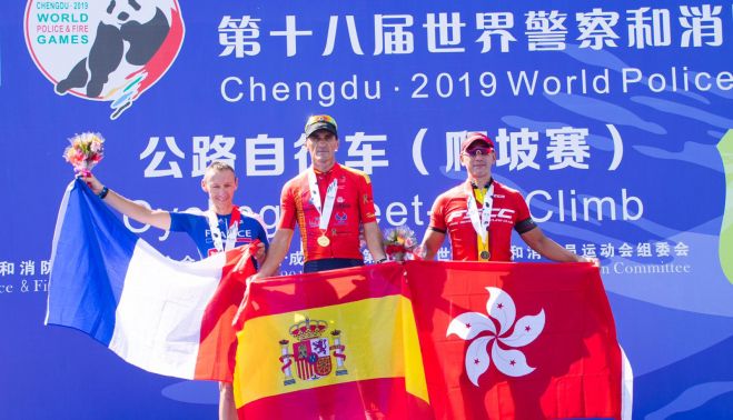 El jerezano Francisco José Medina vence en la prueba de hill climb disputada en los Juegos Mundiales de Policías y Bomberos (WPFG) que se están celebrando en Chengdú (China), logrando así su segunda medalla de oro después de la lograda en la prueba de cicling street criterium.