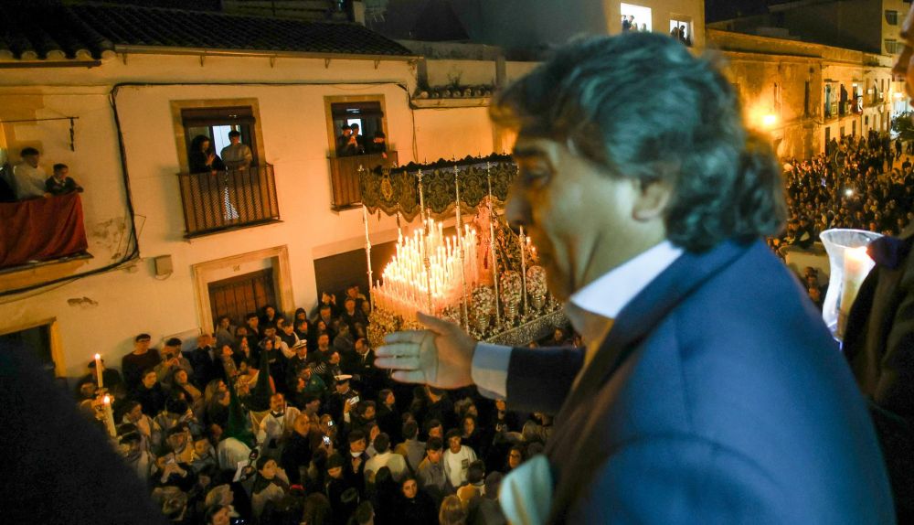 En ese momento hablan sobre la recogida del Prendimiento. El joven es de Santiago, como su abuelo Mateo Soleá, y defiende que si en la pasada madrugada del Miércoles al Jueves Santo hubo retraso, "fue con la Virgen del Desamparo; y por culpa del de la bomba”. Alude a la falsa amenaza de un explosivo en el parking subterráneo del Arenal, conato que causó mucho desconcierto e inquietud la noche antes. "El tío resulta que es de Sanlúcar —el detenido—…, ya podía haber puesto en el coche tres kilos de langostinos”, dice bromista mientras todos ríen su ángel con sonoras carcajadas. Apenas pueden minimizar el runrún tan potente que dejan entrar desde la calle los tres balcones abiertos de par en par.