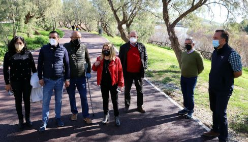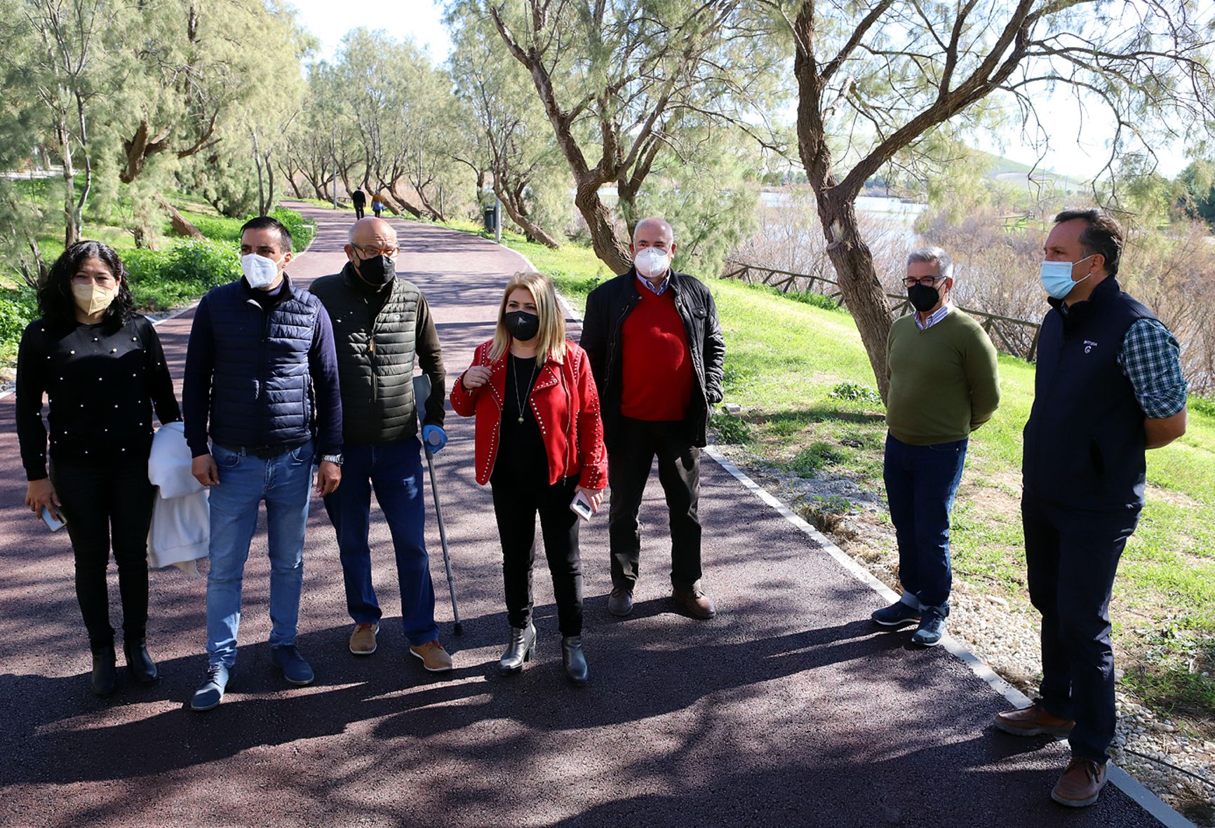 La alcaldesa, Mamen Sánchez, junto al teniente de alcaldesa de Urbanismo, Infraestructuras y Medio Ambiente, José Antonio Díaz, y a representantes vecinales, han supervisado el resultado de las obras del sendero del lóbulo 2 de la Laguna de Torrox, que está siendo reformado de manera integral para así presentar un nuevo pavimento más accesible y estable.