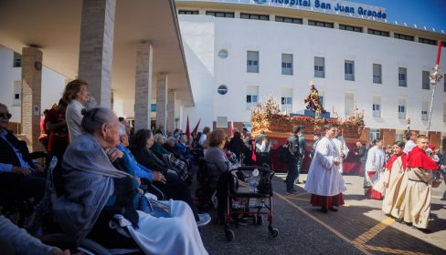 Desde allí puso rumbo a San Juan Grande, donde tuvo lugar un encuentro íntimo en el que los protagonistas fueron los nazarenos, el Señor de Bondad y los residentes del geriátrico.