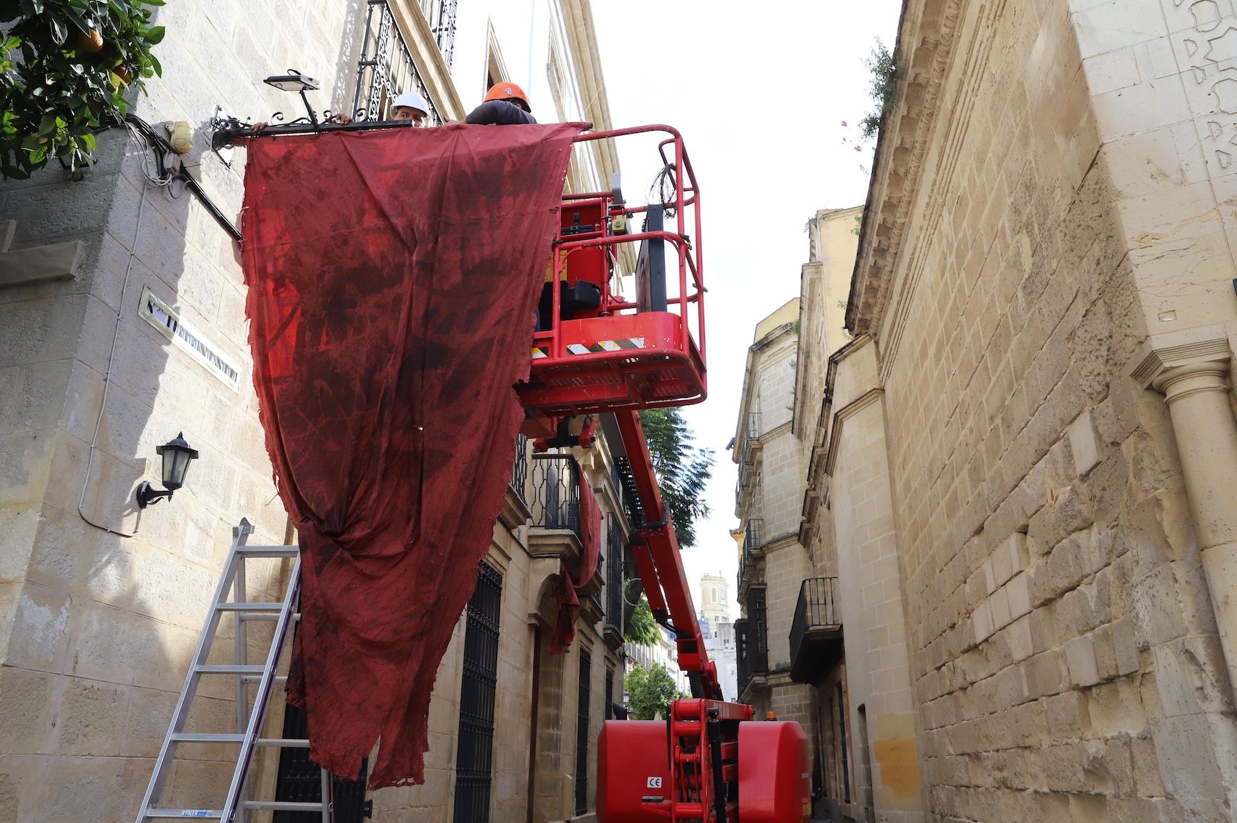 La plaza de la Yerba lucía desde el lunes decorados que evoquen el París de 1871, pero ya este martes se han incluido otros elementos como carteles que le dan todavía una mayor verosimilitud al trabajo de los encargados de arte de la producción. Algunos de estos profesionales llevan más de un mes en Jerez haciendo un minucioso trabajo para no dejar nada a la improvisación.