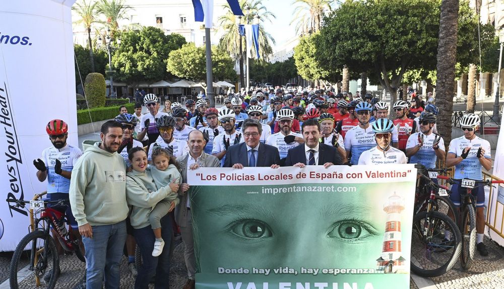 La plaza del Arenal y El Alcázar de Jerez, dos joyas del patrimonio de la ciudad, han sido los escenarios de esta prueba (de salida y llegada) que ha reunido en Jerez a policías locales de todas las edades, venidos de toda la geografía de España. Uniformados esta vez con maillots multicolores y MTB de última generación, los corredores han estado liderados por el equipo de Sherrypol que, con su dieciséis representantes, ha sido el más numerosos del pelotón. Antes del corte de cinta, se ha homenajeado a la familia de la niña Valentina, con su madre, Tamara Romero al frente, y a la Asociación 'Valentina. Un grito a la esperanza FOP'.