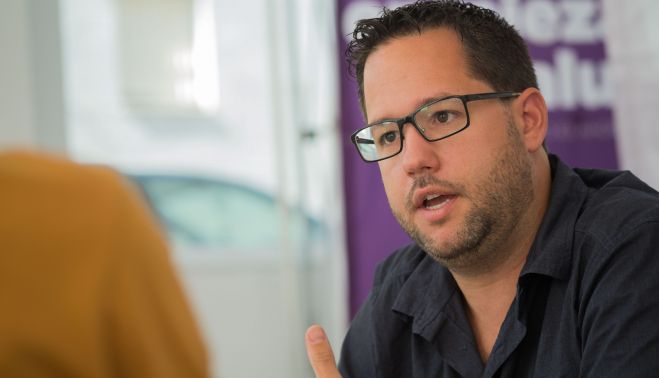 El coordinador provincial de Podemos, en la sede del partido en Jerez. FOTO: MANU GARCÍA.