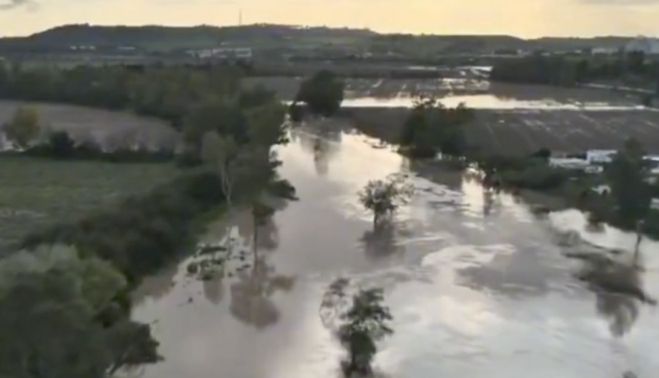 El Ayuntamiento de Jerez ha compartido en sus redes sociales las imágenes aéreas que ha grabado esta tarde, a las 18.30 horas, la Policía Local de Jerez sobre el estado del cauce del río Guadalete.