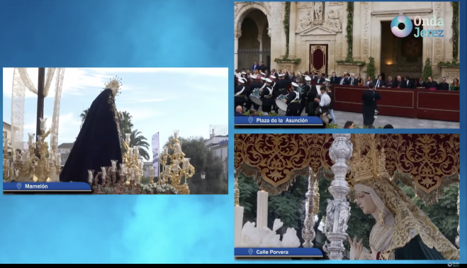 Todas aquellas personas que sigan la señal municipal podrán ver la salida de los templos de hasta 11 imágenes y la recogida de hasta 8 cofradías con sus correspondientes palios. Este programa especial podrá seguirse en directo también en la APP municipal Jerez Smart.