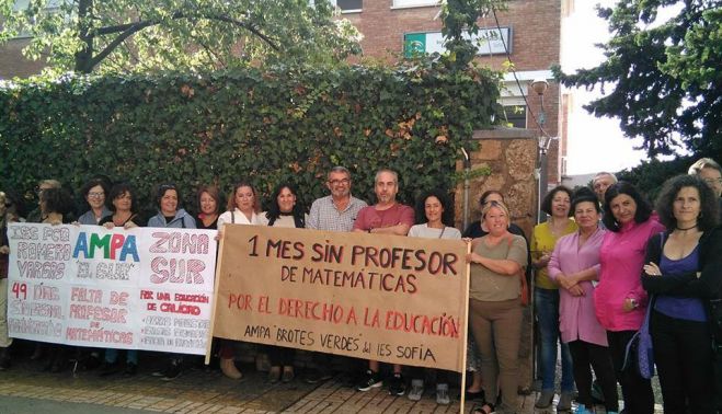 Si bien el IES Sofía se ha concentrado para denunciar la falta de un docente de Matemáticas que cubra sus horas lectivas desde hace un mes, en la misma mañana se ha cubierto la vacante que tanto ansiaban. No obstante, en el IES Romero Vargas continúan estando sin profesor de Matemáticas, además de la notable falta del personal de administración. Y por otro lado, el IES La Granja también espera profesionales administrativos y un docente de la rama sanitaria. La presidenta de la Flampa, Geli Sánchez, critica desde su cuenta de Facebook que al instituto de La Granja "les habían dicho —hace dos semanas— que en cuestión de días tendrían al menos un administrativo... y aún nada". Y por último, en el IES Vega del Guadalete también falta un técnico de informática para impartir los cursos de la formación profesional básica y el ciclo medio de Informática.