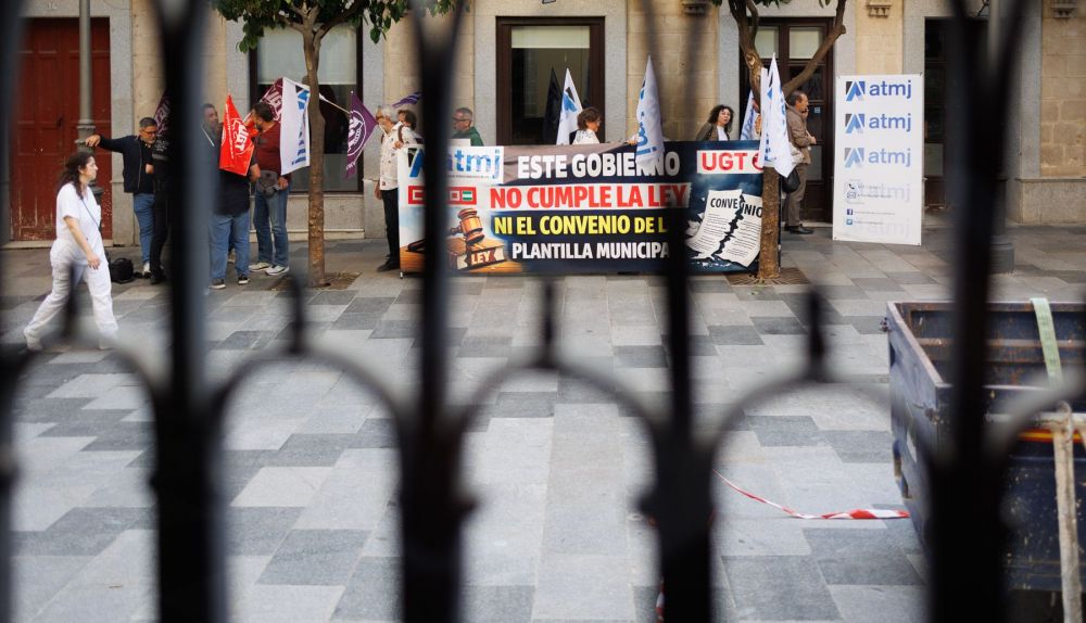 Las secciones sindicales ATMJ, UGT y CCOO del Ayuntamiento de Jerez volvieron a concentrarse a las puertas del Consistorio en un lunes negro, en lugar de los habituales martes negros, durante la celebración del pleno extraordinario celebrado este lunes, para exigir el cumplimiento de las Leyes de la Función Pública y de los convenios y acuerdos firmados con la plantilla municipal.