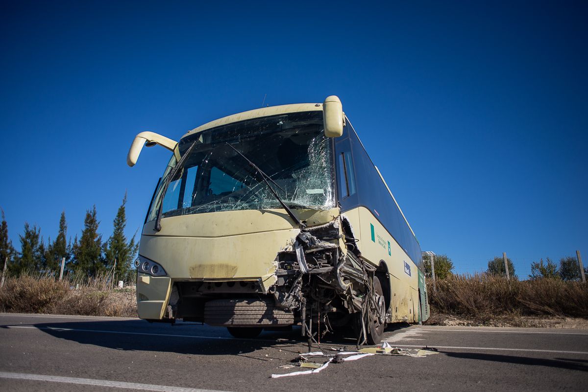 Un turismo ha chocado de manera frontolateral contra un autobús de línea, repleto de escolares, y el fatídico accidente se ha saldado con un fallecido en Jerez de la Frontera. El suceso, que aún se encuentra bajo investigación, ha sucedido al filo de las 7.30 horas de la mañana de este lunes 8 de noviembre en el kilómetro 11 de la A-2003, entre la pedanía de Cuartillos y la ELA de La Barca de la Florida, y ha habido un tercer turismo implicado, donde uno de sus ocupantes, una mujer, ha sufrido heridas en la cabeza.