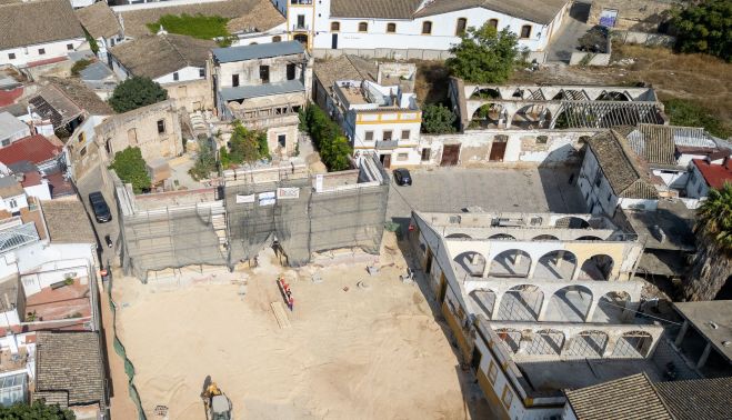 En una de esas actuaciones nos detenemos o ponemos el foco, nunca mejor dicho, para comprobar el desarrollo de unas obras de enorme importancia como la que se lleva a cabo en la plaza del Mercado, el antiguo epicentro social y político del Jerez medieval. Al mismo tiempo, se está interviniendo en lo que queda del palacio Riquelme.