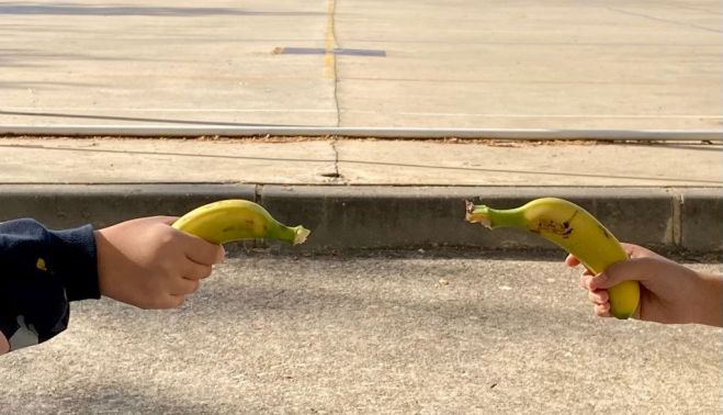 Plátanos como símbolo de solidaridad de los alumnos y alumnas del CEIP Arana Beato de Jerez con el pueblo palmero. En solidaridad con las familias de La Palma y las devastadoras consecuencias que la erupción volcánica está provocando, el CEIP Arana Beato llevó a cabo este miércoles 6 de octubre una acción de solidaridad con la isla canaria repartiendo un plátano canario a cada uno de sus estudiantes. La fruta ha sido donada por Bar La Leyenda.