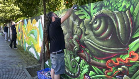 El primero de estos murales ha corrido a cargo de Abraham Castro 'Caos', Adrián Santos 'Santos', Alejandro Tardío 'Decima' y Fran Castro '@Cosa.V', todos ellos autores con una larga trayectoria y colaboradores del Área de Juventud en las actividades relacionadas con el arte urbano, como es este caso. El tema de este trabajo aborda la naturaleza y el mundo animal en unos casos y en otros añade color al muro.