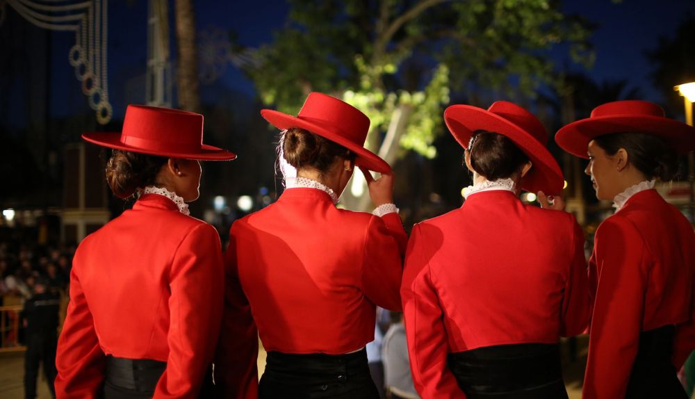 Tiene hernia discal pero está dispuesto a encarar más de 30 bolos tocando el cajón en una semana. Son ingresos para una buena temporada que no se pueden desaprovechar. Su grupo va de caseta en caseta, animando y jaleando al personal que corea las canciones o directamente está a lo suyo, oyendo el sonido ambiente. En el exterior de la caseta, una más de las más de 200 que conforman el Real, venden tabaco de contrabando, llevan claveles marcados por el arte de la coba y el regateo, y portan ramos de globos infantiles de todos los colores. Cerca de ellos también están quienes encuentran a niños perdidos y rescatan del coma etílico a adolescentes ciegos. Esos que velan de uniforme por la seguridad de todos los que van de paisano. Esos que regulan el tráfico bajo una sombrilla o te traen de vuelta a casa entre morado y amarillo albero. Otros que dan corriente eléctrica, que riegan el albero o que vacían las papeleras para que al día siguiente la Feria se levante como si no hubiera pasado nada. Tantos cientos de mujeres y hombres que echan la interminable semana de Feria. Esos que sudan la fiesta sin beber ni bailar, solo con su esfuerzo y su trabajo. Que la maquillan y la ponen guapa para que luzca espléndida cada día. Tantos cientos de personas sosteniendo tanto derroche y tanta celebración.