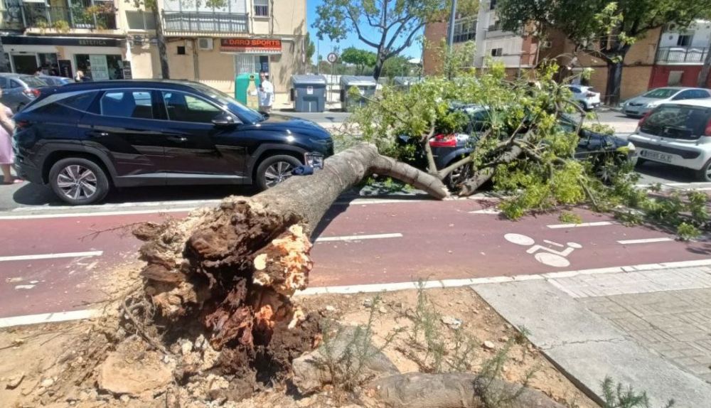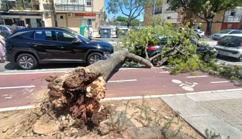 Un gran árbol de la avenida Federico García Lorca ha caído sobre un coche aparcado a su lado, cortando la vía, donde se ha tenido que interrumpir el tráfico