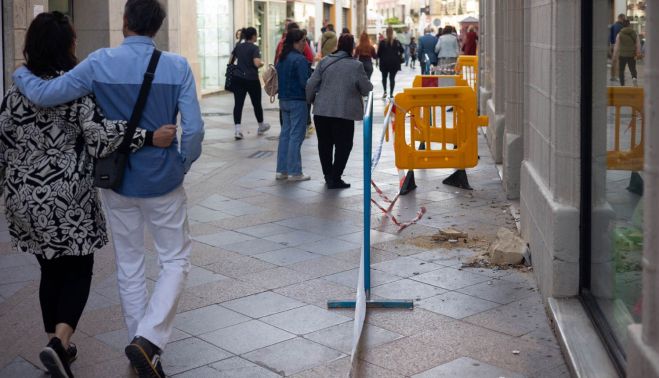 Tras la caída, como medida de prevención, se han colocado unas vallas en la fachada de la tienda para que los ciudadanos que pasen por esa calle no caminen por debajo del balcón por si hubiera algún desprendimiento más.