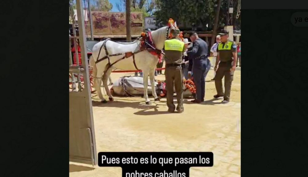 El uso de caballos para los carruajes es un tema siempre controvertido. Si bien en la Feria de Sevilla son habituales los casos de caballos desplomados e incluso fallecidos por agotamiento o por calor, no es tan frecuente en la Feria de Jerez, pero este lunes ha sido la excepción.