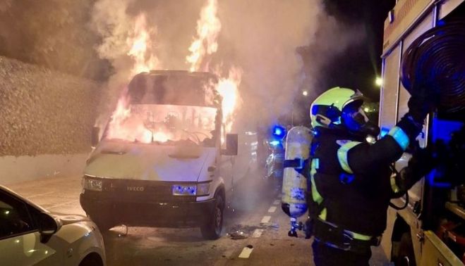 Un incendio declarado en la madrugada de este lunes ha calcinado por completo una furgoneta camperizada que se encontraba estacionada en la calle Gran Canaria, en el Parque Atlántico de Jerez. El aviso del suceso se recibió a las 05:45 horas, momento en que los efectivos del Parque de Bomberos jerezanos se desplazaron rápidamente hasta el lugar para sofocar las llamas que envolvían al vehículo.