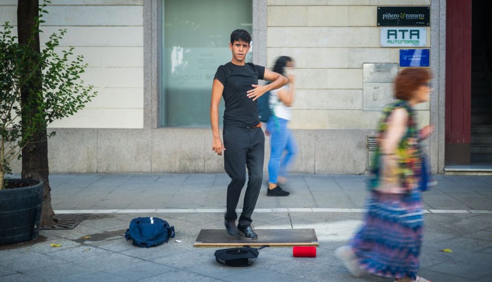 El centro de Jerez, singularmente la calle Larga, como el de otras muchas ciudades, es el escenario que eligen artistas espontáneos para expresar sus talentos musicales, pictóricos y en otras artes. Un trompetista a la altura de la Alameda del Banco, un pintor de origen senegalés, algunos dúos o tríos de cuerda con clásica y, por supuesto, algo de la tierra como el taconeo de un joven al compás flamenco. Su presencia allí tiene un porqué y una historia cargada de ilusiones.