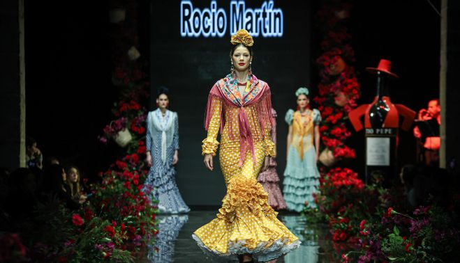 La jornada de desfiles oficiales comenzó con la propuesta de Guillermo Peralta, que este año ha buscado la inspiración en los icónicos espectáculos de la marca de lencería Victoria's Secret para crear una colección que redefine el traje de flamenca tradicional.