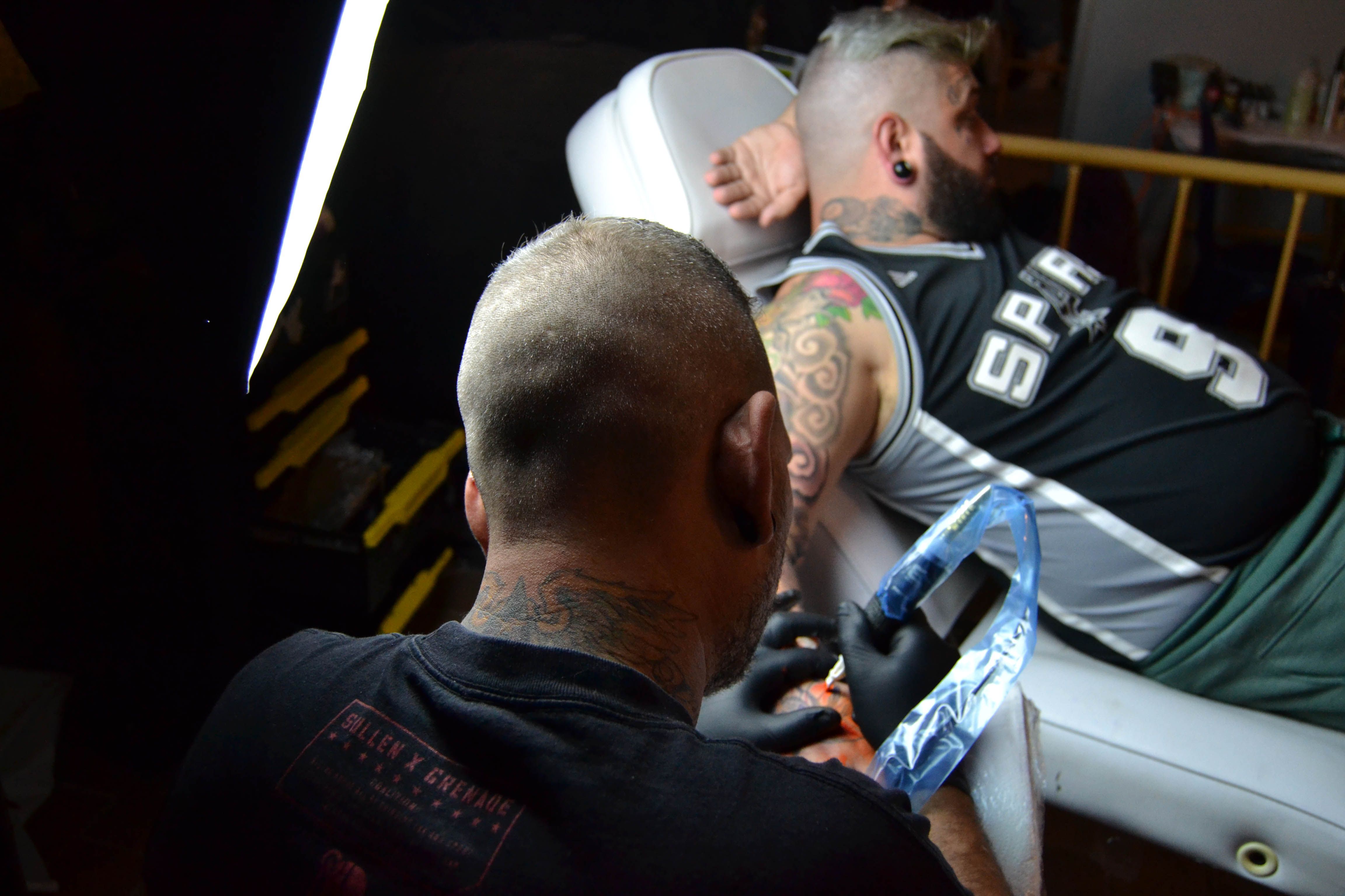 Desde la bodega La Plazuela resuena música 'hip hopera'. Está presente para crear ambiente social, aunque la mayoría del público está incapacitado para escuchar las letras. Un cartel negro que reza IV International Deaf Tattoo Convention sobrevuela los portones de madera del establecimiento ubicado en Madre de Dios. La gente se arremolina en la entrada. Nadie habla, solo se escucha el sonido y las vibraciones que producen los altavoces desde el interior. Un Cadillac verde restaurado, una fila de motos del club Sureños 11408 y dos grafiteros soltando tinta sobre unos paneles en vez de dibujar la piel, son las "atracciones" que se encuentran los visitantes en el patio principal de la bodega. En el interior, una peluquería, un mercadillo con esculturas de madera o con merchandising de Lubaabä, y puestos de tatuadores internacionales. No es un encuentro del tatuaje cualquiera, tiene un toque especial, se trata del cuarto encuentro mundial de tatuadores sordos y Jerez, entre todos los países del mundo, ha sido la ciudad escogida para celebrar la edición de este año desde el 28 al 30 de octubre.